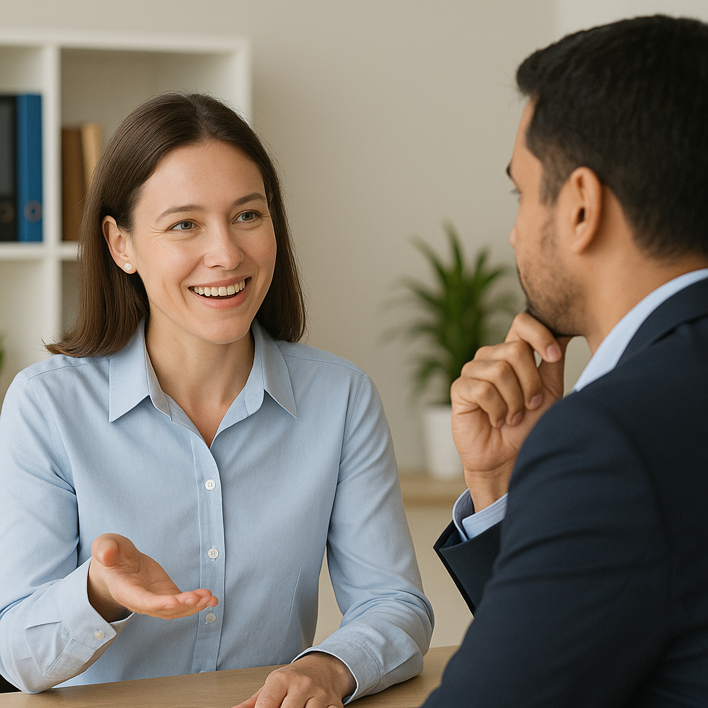 Sertakan bahasa tubuh yang mendukung, seperti kontak mata, senyuman, dan gestur yang ramah.